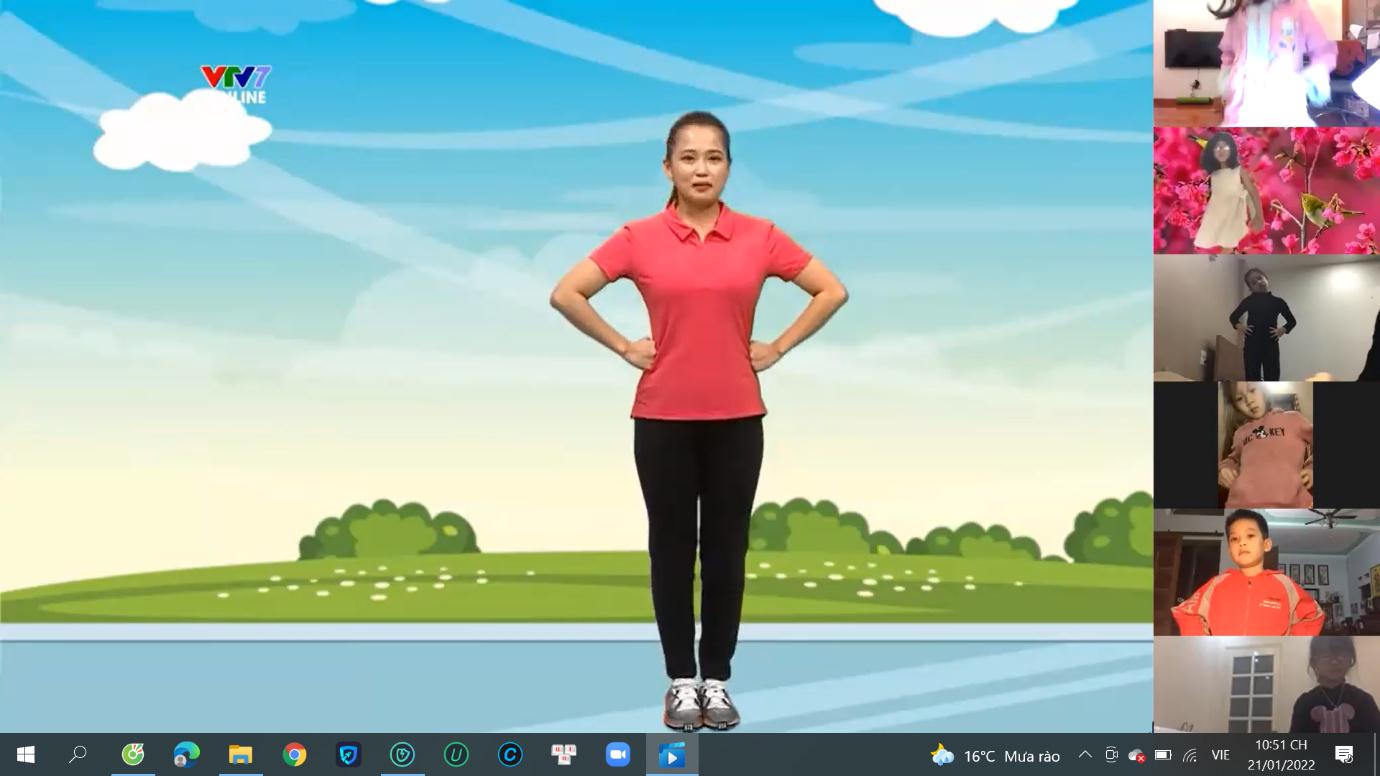 Năm học 2021-2022 là một năm đầy khó khăn và thách thức đối với ngành Giáo dục do tác động của dịch bệnh Covid-19. Nhưng với phương trâm “Tạm ngừng đến trường nhưng không ngừng học tập”, trong bối cảnh dịch Covid- 19 đang diễn biến hết sức phức tạp, ngay từ đầu năm học 2021-2022 học sinh các cấp ở thành phố Hà Nội cũng như ở nhiều thành phố khác đã lựa chọn hình thức học oline cho học sinh các cấp. Học Online là một giải pháp tạm thời để giúp học sinh phòng chống dịch bệnh, đảm bảo sức khỏe và có tâm lí học tập tốt cho học sinh. Tuy nhiên nếu kéo dài thời học online đối với học sinh và đặc biệt với học sinh lớp 1 thì dẫn đến hệ lụy không thể lường trước được. Vì vậy trong quá trinh học online, giáo viên cần chú ý đến việc nghỉ giữa giờ cho học sinh, giúp học sinh đỡ căng thẳng, mệt mỏi và đỡ hại mắt. Giáo viên cần cho học sinh vận động cơ thể sau mỗi tiết học. Chính vì những lí do đó mà Vụ Giáo dục Thể chất, Bộ giao dục và đào tạo và kênh Truyền hình Giáo dục Quốc gia VTV7 phối hợp hợp sản xuất Chương trình “ Vận động Vui khỏe”- một chương trình giáo dục thể chất cho học sinh lớp 1. Từ khi có chương trinh này học sinh lớp 1 trường Tiểu học Bồ Đề thường xuyên được vận động với các động tác đầu và cổ, giúp các con thư thái và dễ chịu sau mỗi tiết học online.