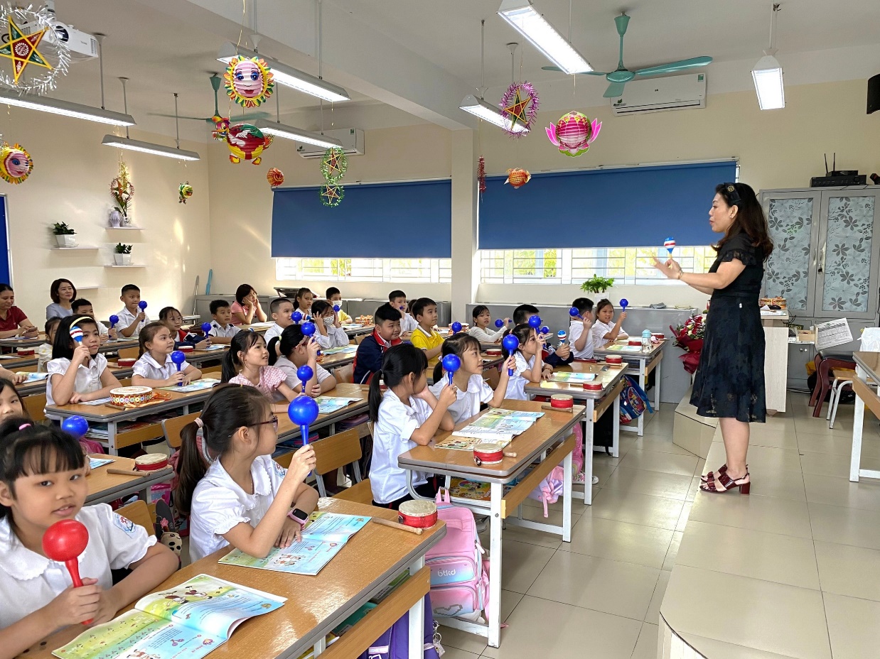 Cô giáo Hồng Trâm trong giờ học Âm nhạc