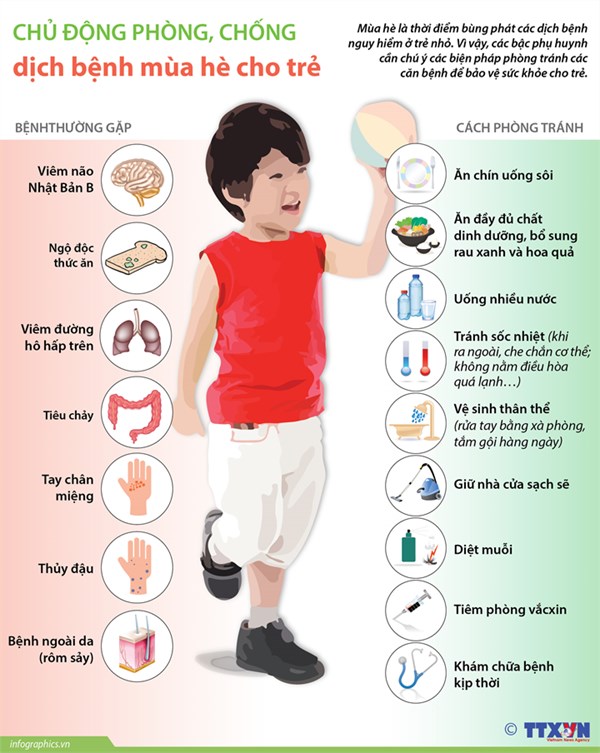 Ngoài ra, bệnh viện Nhi thông tin thêm, thời tiết nắng nóng của mùa hè làm gia tăng sự phát triển của ruồi, muỗi, gián, kiến… dẫn đến dễ lây lan các mầm bệnh. Mùa hè là thời điểm trẻ cùng gia đình được đi du lịch nhiều hơn, sử dụng các thực phẩm chuẩn bị sẵn hoặc thức ăn đường phố cũng khiến trẻ dễ bị nhiễm khuẩn hoặc nhiễm độc tố vi khuẩn.