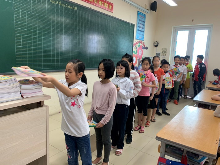 Các bạn học sinh lớp 3A tích cực quyên góp vở