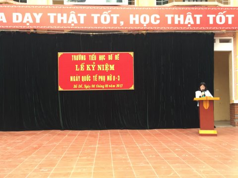 Nhân kỷ niệm 107 năm ngày Quốc tế phụ nữ và 1977 năm khởi nghĩa Hai Bà Trưng, sáng nay (6/3/2017) trường tiểu học Bồ Đề đã long trọng tổ chức Lễ kỷ niệm 107 năm ngày Quốc tế phụ nữ và 1977 năm khởi nghĩa Hai Bà Trưng. Buổi lễ là dịp ôn lại lịch sử vẻ vang của phụ nữ, nhằm tôn vinh, lưu giữ những giá trị truyền thống tốt đẹp của người phụ nữ Việt Nam “anh hùng, bất khuất, trung hậu, đảm đang”. Cùng với đó, đây cũng là dịp để ghi nhận những kết quả, thành tích đã đạt được của các nữ giảng viên, cán bộ nữ trường tiểu học Bồ Đề.