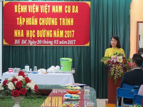 Thạc sỹ, Bác sỹ Đào Lê Nam Trung - Đại diện Bệnh viện Việt Nam- Cu Ba lên giảng về nội dung Nha học đường cho 40 đồng chí là cán bộ y tế các trường Tiểu học và THCS trên địa bàn Quận Long Biên và giáo viên trường tiểu học Bồ Đề.