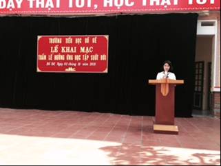 Với truyền thống hào hùng của dân tộc được lớp lớp đàn em noi theo, lớp lớp thế hệ học sinh càng quyết tâm nỗ lực học tập, rèn luyện và đã đạt được những thành tích đáng tự hào. Đại diện cho 750 em HS trường Tiểu học Bồ Đề, em Nguyễn Mỹ Anh lên bày tỏ quyết tâm của mình trong việc học tập, rèn luyện nhằm góp phần đưa phong trào “ Phát triển văn hóa đọc trong kỷ nguyên số” theo đúng yêu cầu của chủ đề năm 2016.