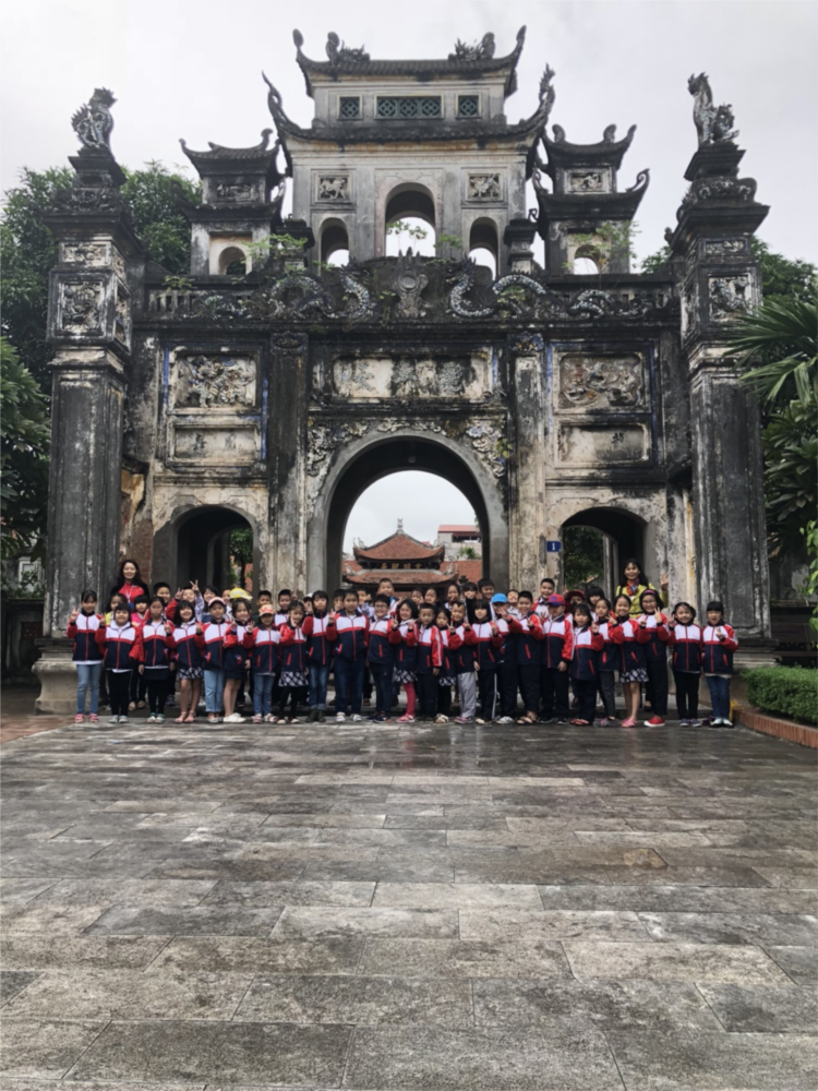 Hình ảnh: Học sinh khối 3 trong buổi học tập thực địa tại đình Phúc Xá- Bắc Biên