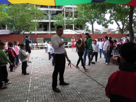 Hình ảnh học sinh khối 1 bốc thăm thi đấu kéo co