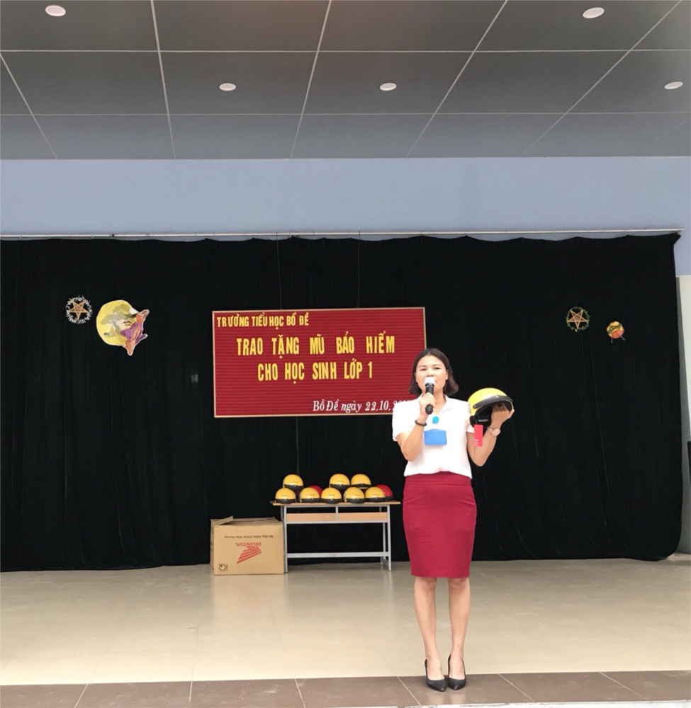 Ngày 22/10/2018 237 em học sinh lớp 1 được nhận chiếc mũ bảo hiểm phù hợp Quy chuẩn kỹ thuật Quốc gia do Công ty Honda Việt Nam trao tặng .