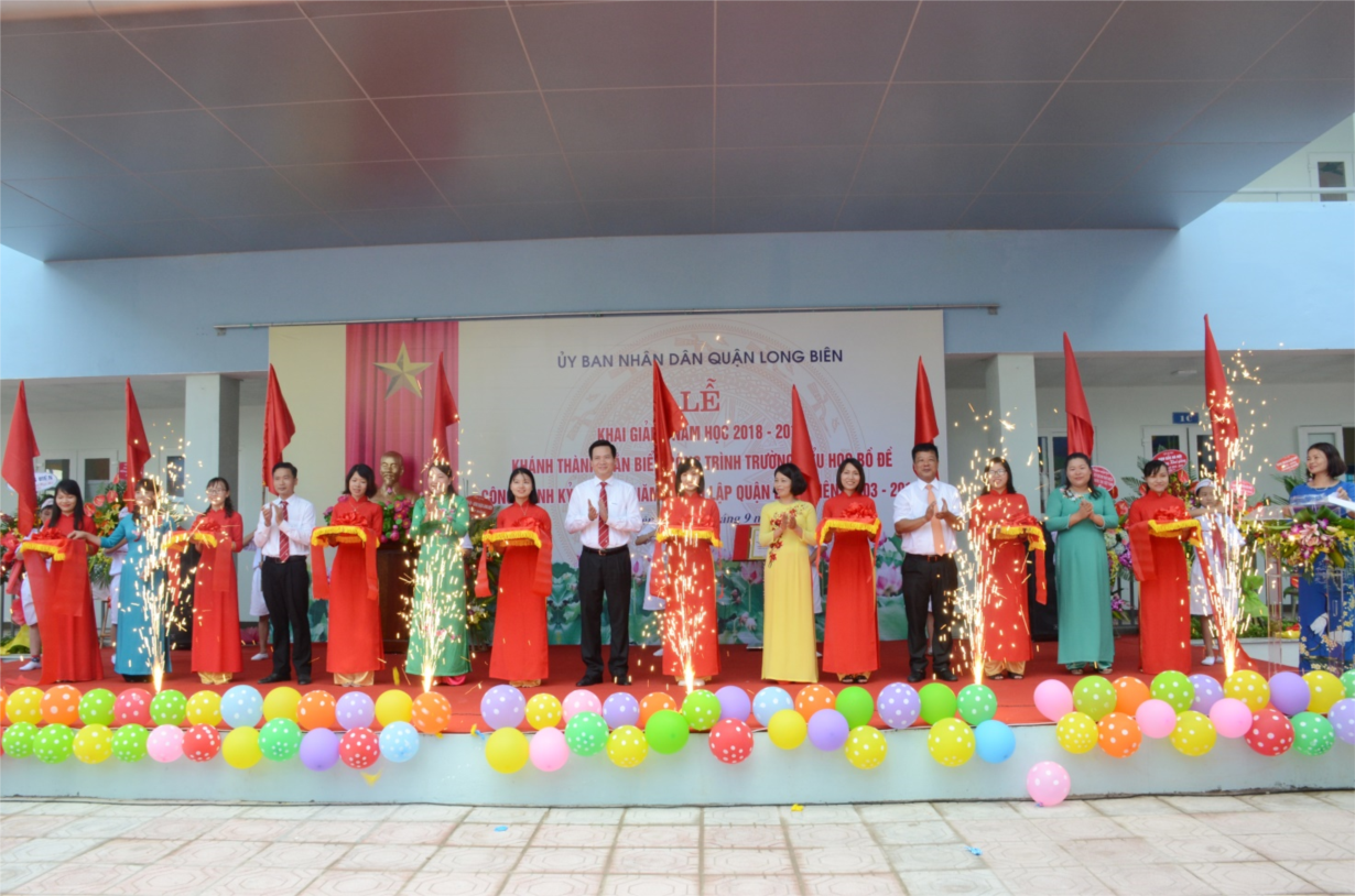 Toàn thể các các quý vị đại biểu, các thầy cô giáo và các em học sinh đã chứng kiến lễ cắt băng khánh thành công trình; Chào mừng Quốc khánh 2/9 và kỉ niệm 15 năm thành lập Quận trong niềm vui và phấn khởi thầy và trò thầm hứa sẽ quyết tâm hoàn thành tốt nhiệm vụ năm học 2018 – 2019.