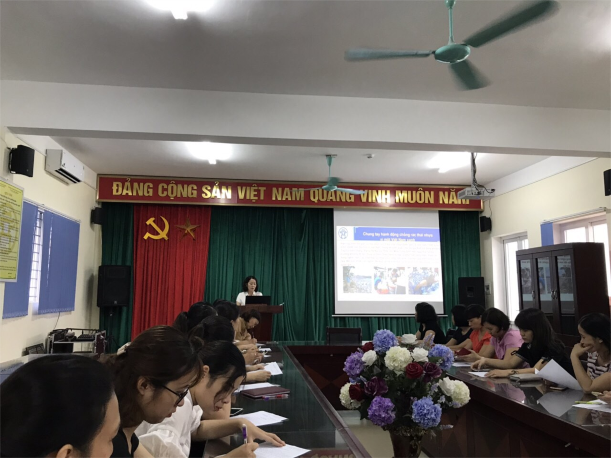 Hình ảnh CB – GV – CNV kí cam kết thực hiện “ Chống rác thải nhựa”